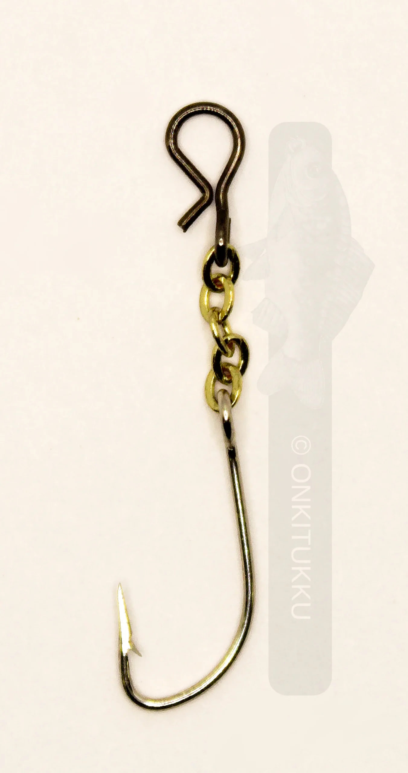 Ketjukoukku missä on 5 lenkkiä ja perholukko. Koukun koko #10