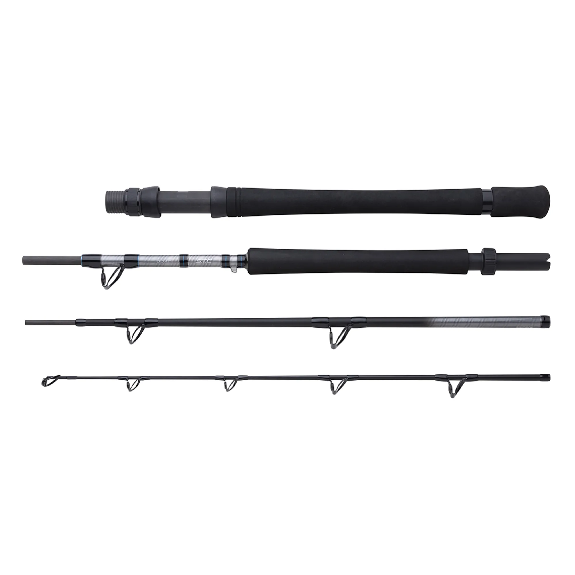 Neliosainen pieneen tilaan menevä venekalastusvapa sopii hyvin tropiikkiin venepilkintää. Helppoa ottaa mukaan lentokoneeseen pienen kokonsa takia.