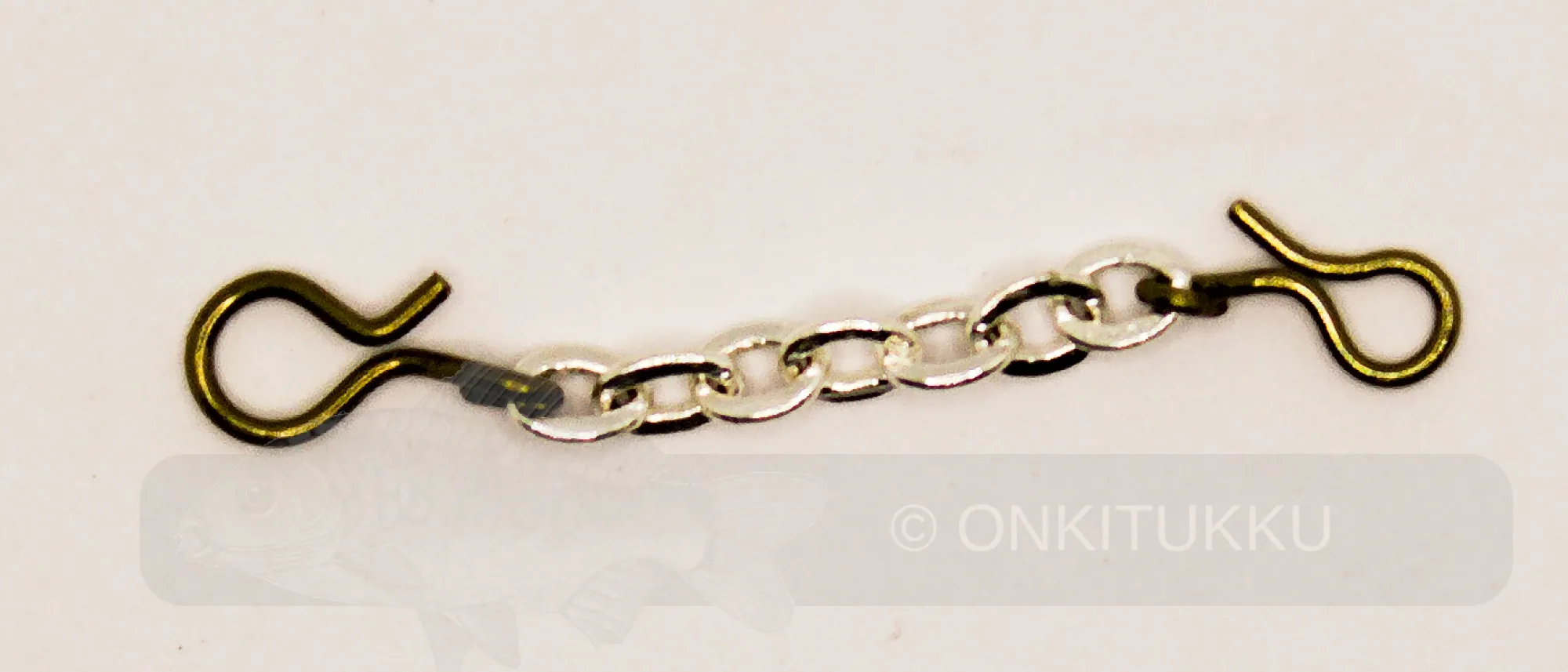 Pilkkiketju kahdella perholukolla. Pakkauksessa kaksi pilkkiketjua. Pituus noin 2 cmLenkkien määrä: 7 kplPerholukkoje…