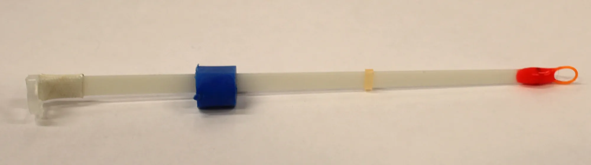 Mormuskointiin tarkoitettu filmikärki. Kärjen jäykkyyttä voi säätää. Kärjen päässä on siimalenkki. Materiaalina ruotsalainen Lavsan. Älä pujota siimaa sinisen silikoniosan läpi (kanittaa).
