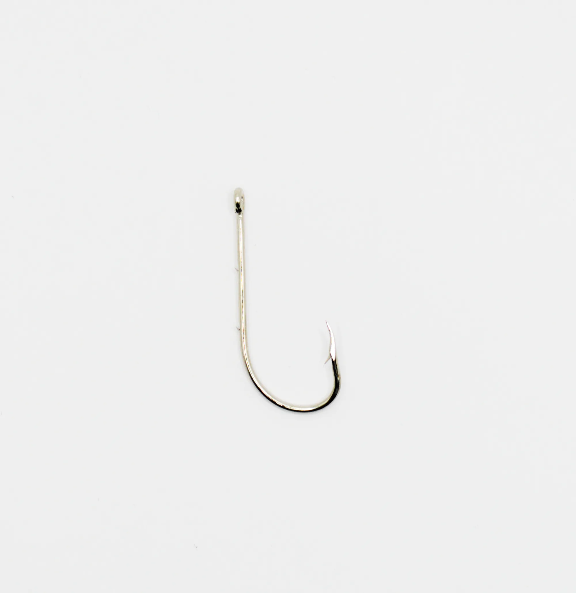 Kemiallisesti teroitettu nikkelöity hiiliteräksinen sivuvääräkoukku missä on pitkä varsi väkäsillä ja lenkillä.