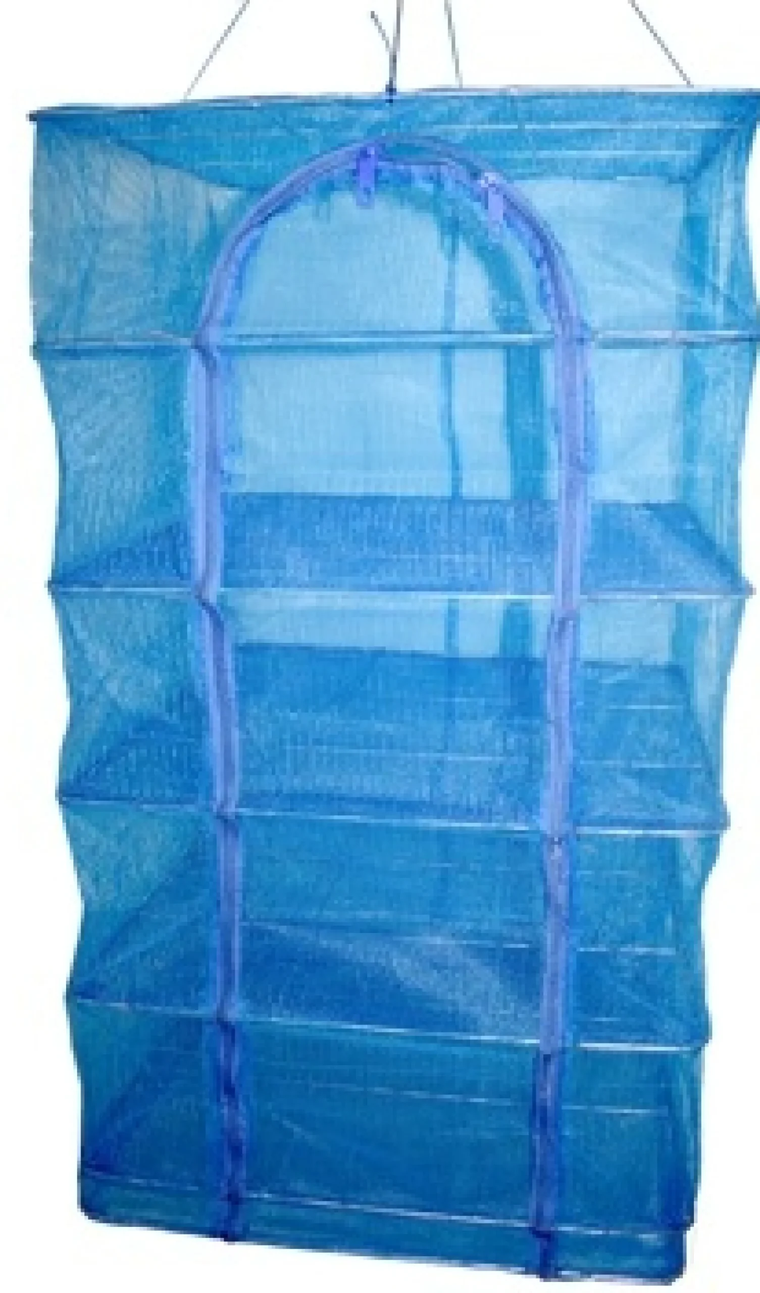 Ripustettava kuivausteline yrteille, marjoille, kukille, kaloille. Telineen ympärillä on verkkokankaiset seinät ja edessä on vetoketjullinen ovi.
