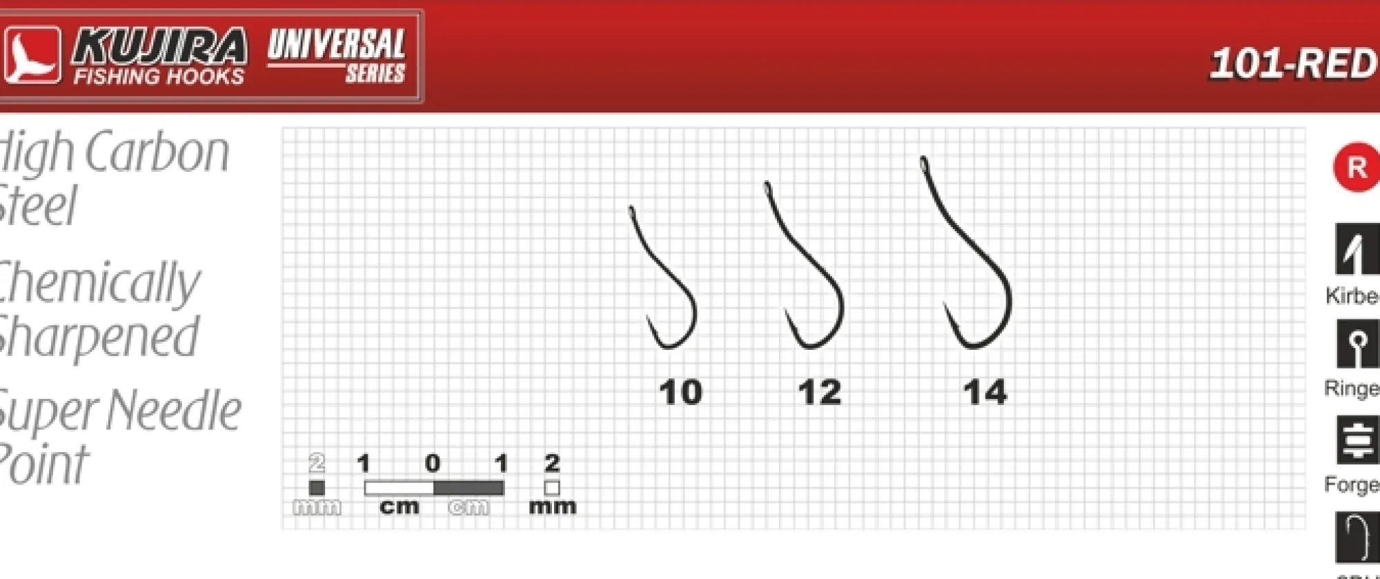 Punainen, kemiallisesti teroitettu hiiliteräs sivuvääräkoukku missä on pitkä kaareva varsi väkäsillä ja lenkillä. Tämä malli on erittäin hyvä suursärjen ja siian kalastukseen.