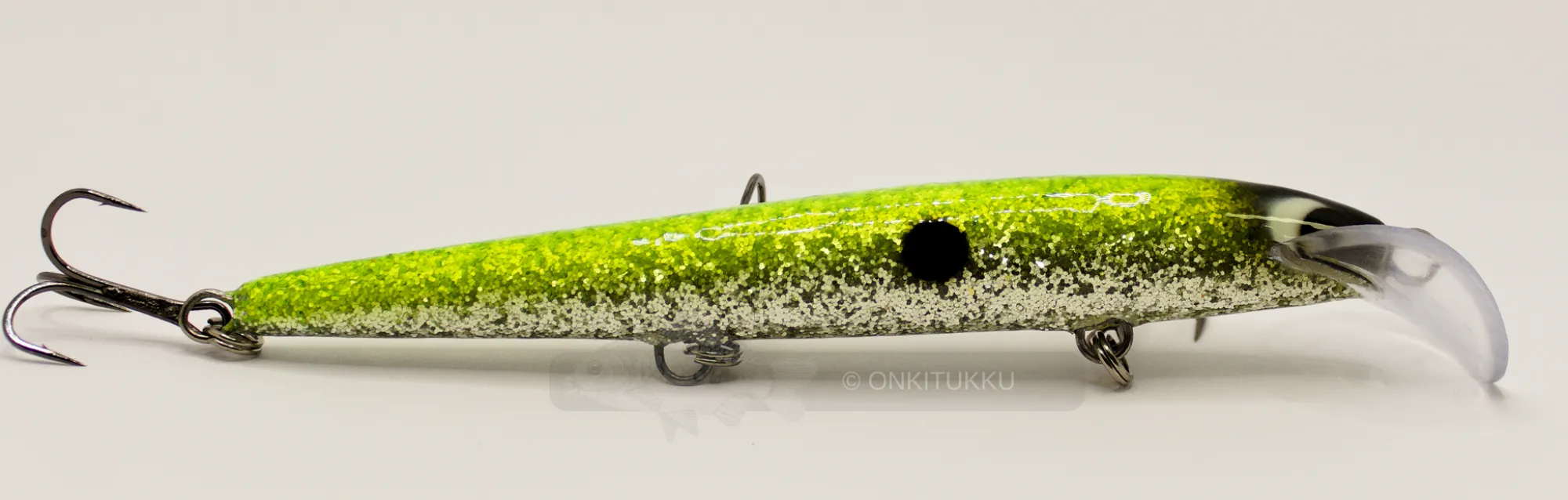 Hakevauintinen vetouisteluvaappu kuhalle ja taimenelle. Vaapussa on kolme kolmihaarakoukkua koko #4 ja satula leukalappu. Made in Finland