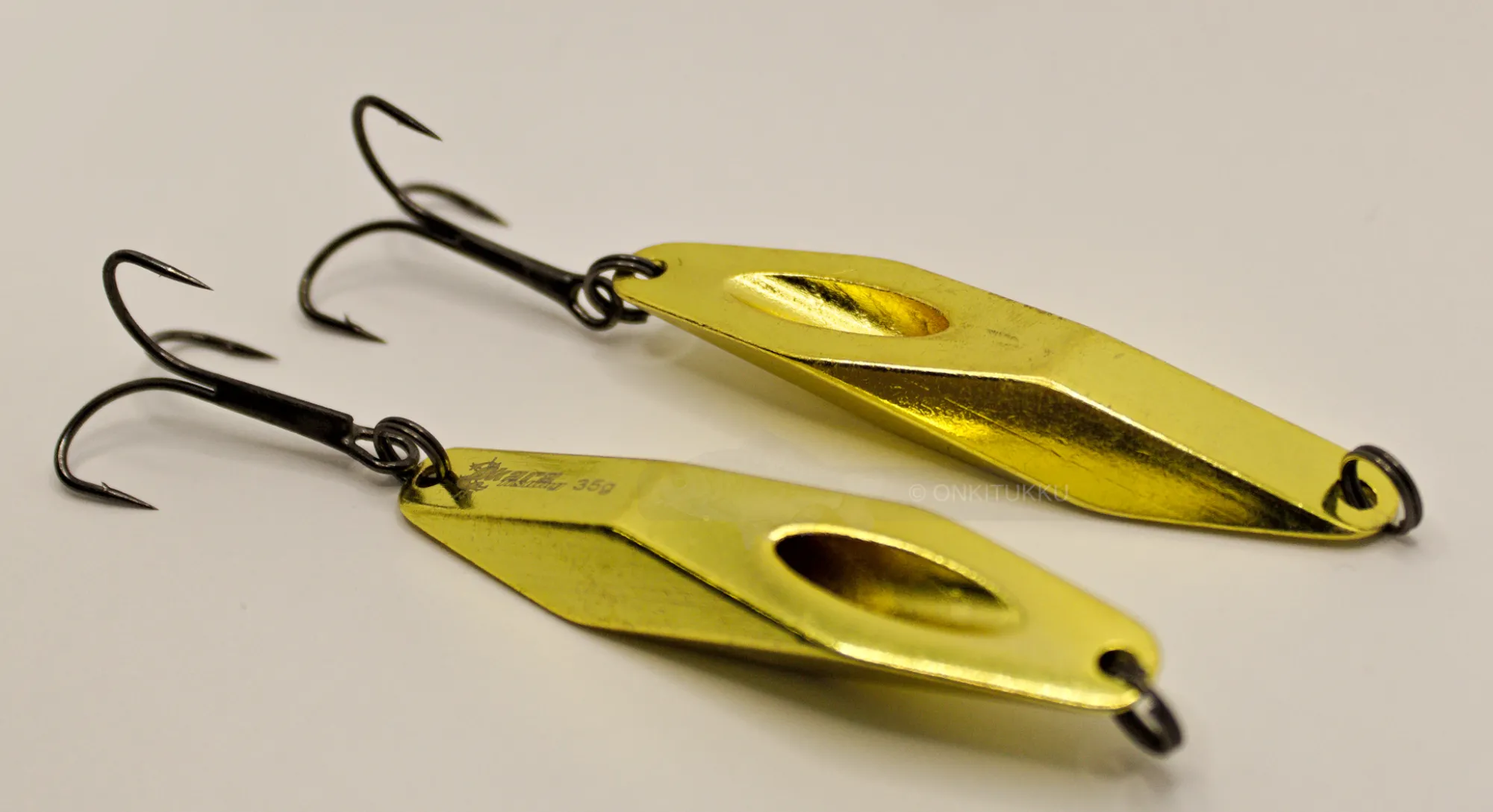 Akaran viistoon leikattu uistin kolmihaarakoukulla. Paino: 35 gPituus: 110 mm