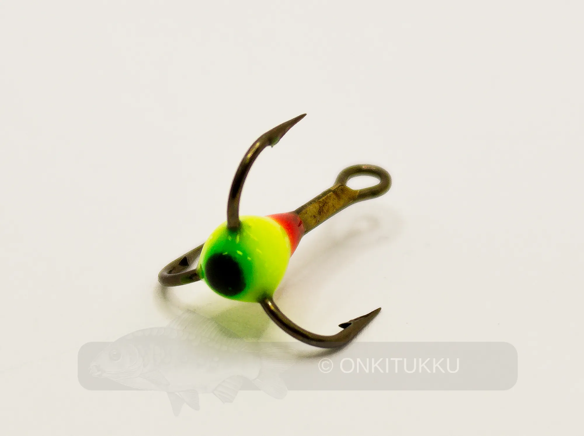 Suureen suosioon nousseet kotimaiset värikoukut. VMC:n kemiallisesti teroitettu koukku takaa hyvän tarttuvuuden. Osa maaleista ovat UV-maaleja.