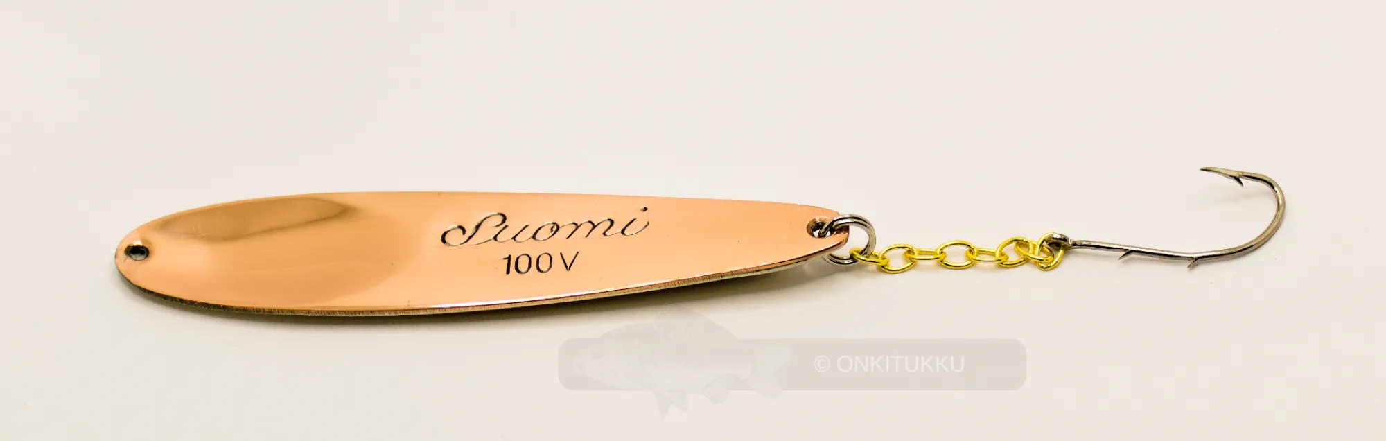 Suomi-pilkistä on tullut monen kuhapilkkijän vakioviehe. Pilkissä on vakiona kirkas ketjukoukku, jota kannattaa vaihtaa värikoukkuun. Puustjärvi on valmistanut pilkkejä jo 50-luvulta asti.