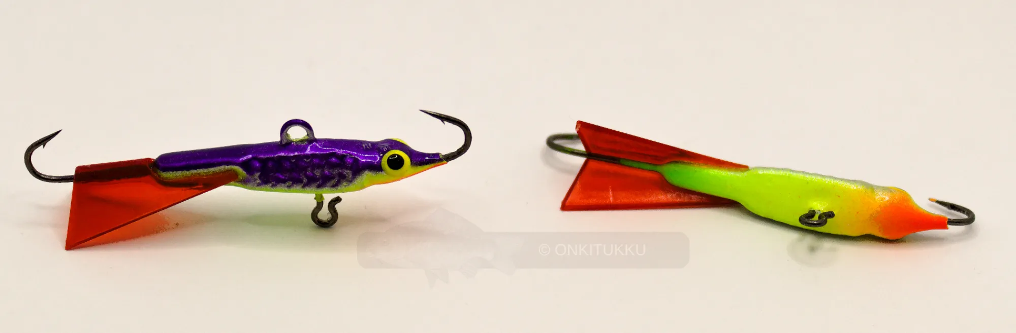 Siro tasapainopilkki isolla pyrstölevyllä. Erittäin tehokas ahvenelle. Pikakiinnityslenkki vatsakoukulle. Isot väkäset päätykoukuissa.