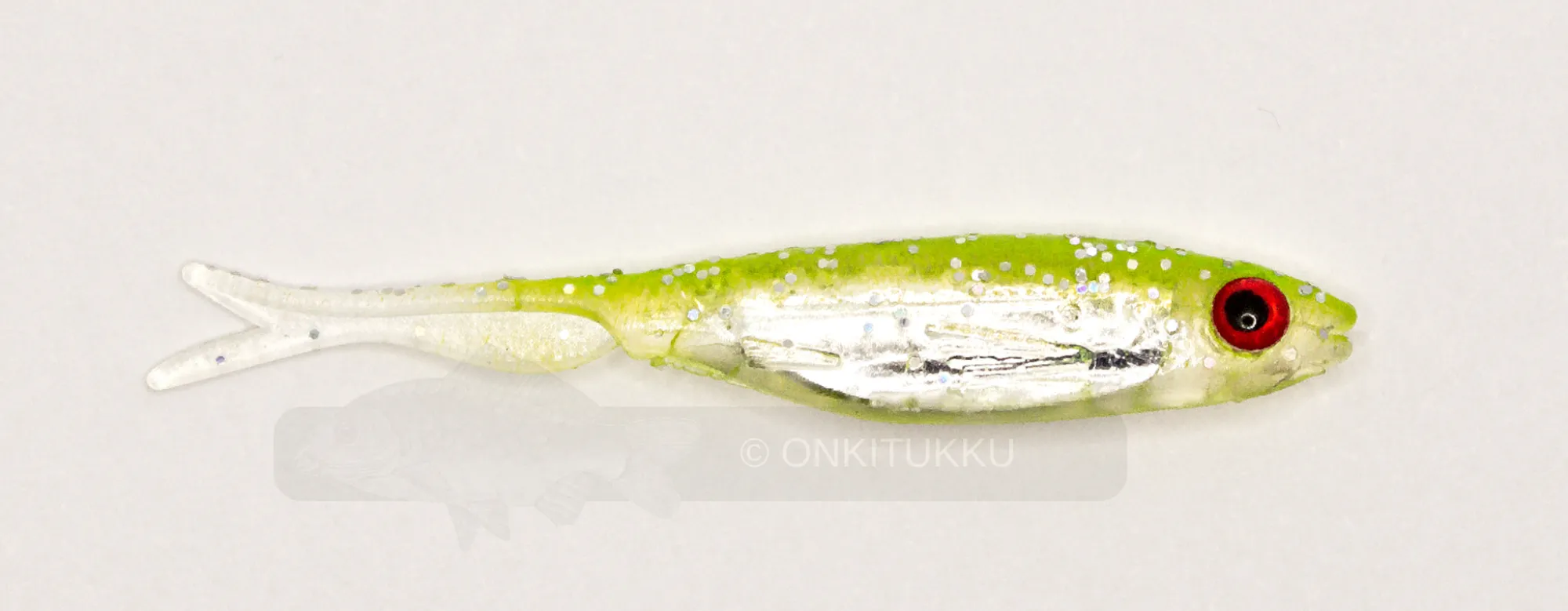 Erittäin tehokas haarapyrstöinen kalajigi, jonka sisällä on kiiltävä kultainen foliolevy joka lisää jigin houkuttelevuutta. Toimii erittäin tehokkaasti drop shot jiggauksessa. Toimii hyvin hauen, ahvenen ja kuhan kalastukseen.