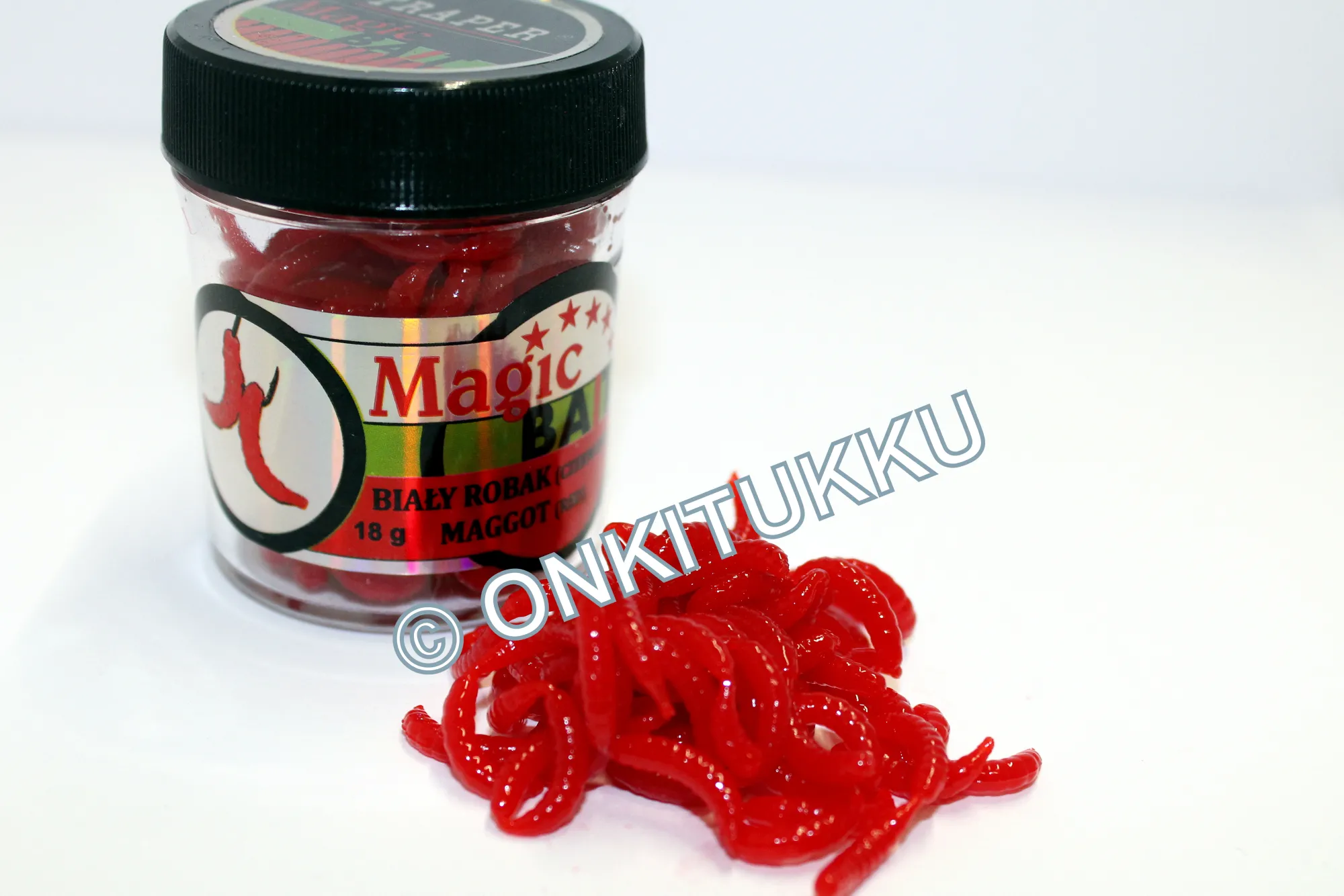 Keinotekoisia hajustettuja toukkia. Ulkonäöltään luonnollista toukkaa imitoiva tuote. Pehmeä koostumus jonka ansiosta toukka on helppo pujoittaa koukkuun. Ota aina mukaan kalaretkelle näitä, niin syötit eivät lopu kesken. Purkissa on 18g.