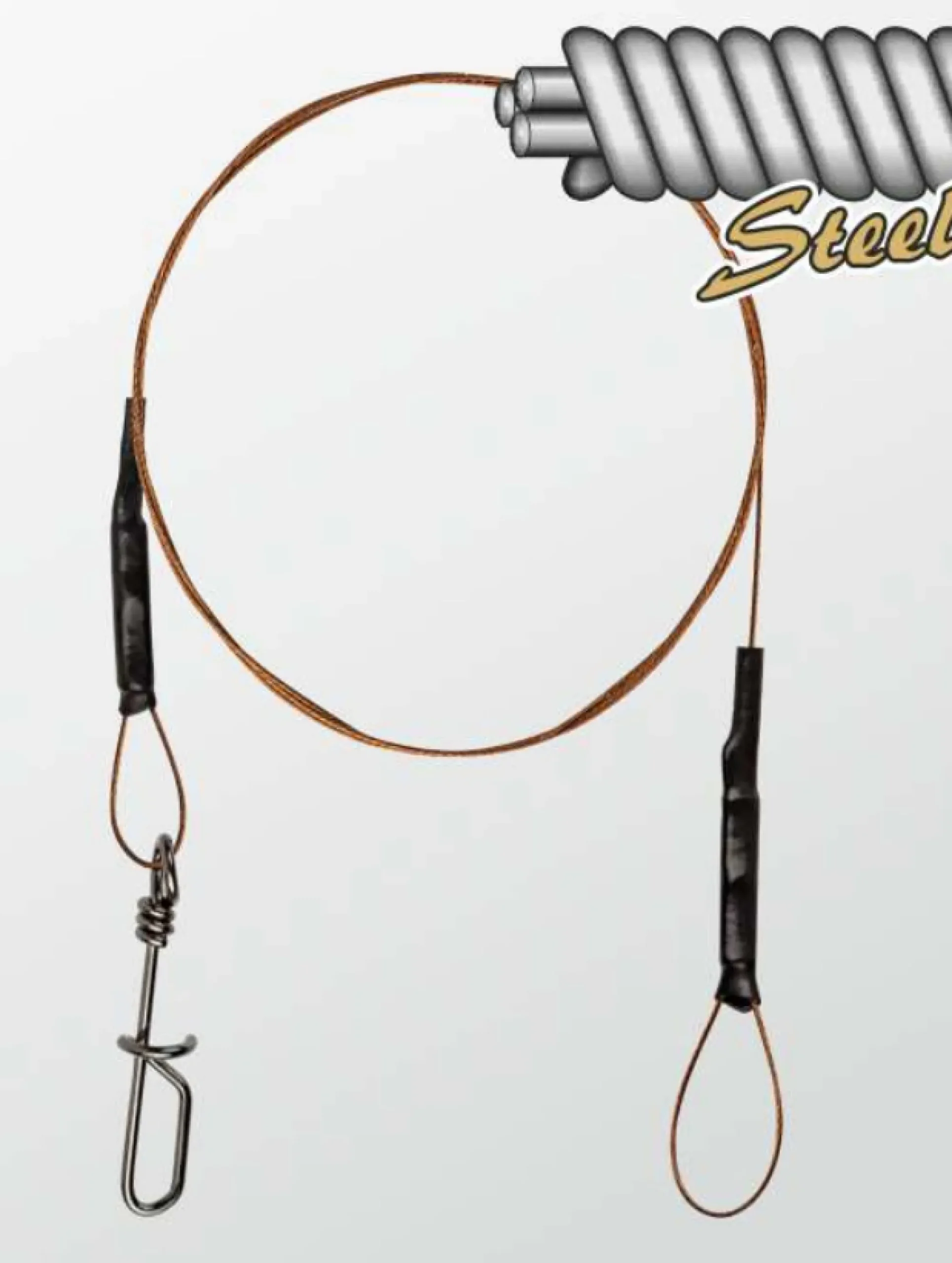 Ohuista teräskuiduista punottu peruke, joka on notkea, venymätön, pehmeäpintainen ja muistiton. Perukkeessa yhdessä päässä silmukka ja toisessa päässä pikalukko mikä tekee perhon vaihtamisesta nopeaa. Pituus 50cm. Vetolujuus 18kg. Pussissa on 1kpl.