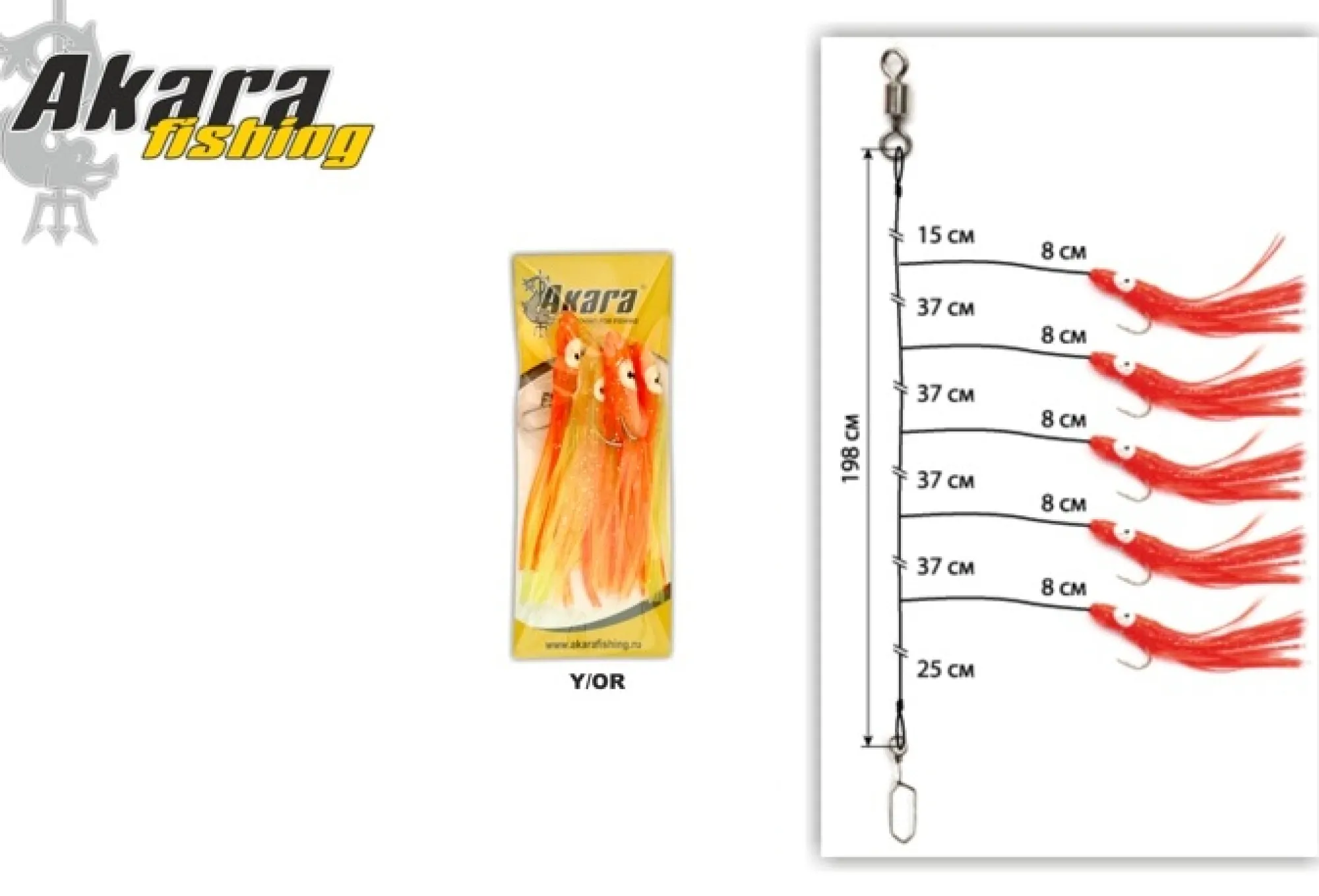 Kirkas siima paksuus 0,8 mm. Koukkujen päällä mustekala syötti. Koukun koko:5/0 Siimanpaksuus 0,8 mmPituus 198 c…