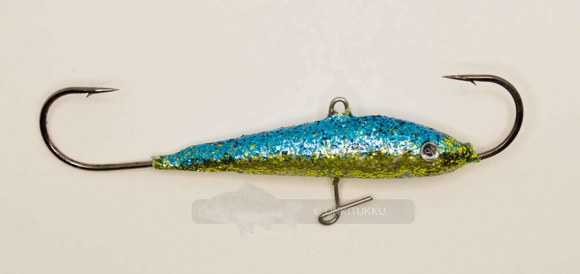 Hauelle suunniteltu tasapainopilkki. Etu- ja takakoukut ovat kokoa: 3/0. Takakoukkuun voi pujoittaa jigin tai pyrstön jigistä.