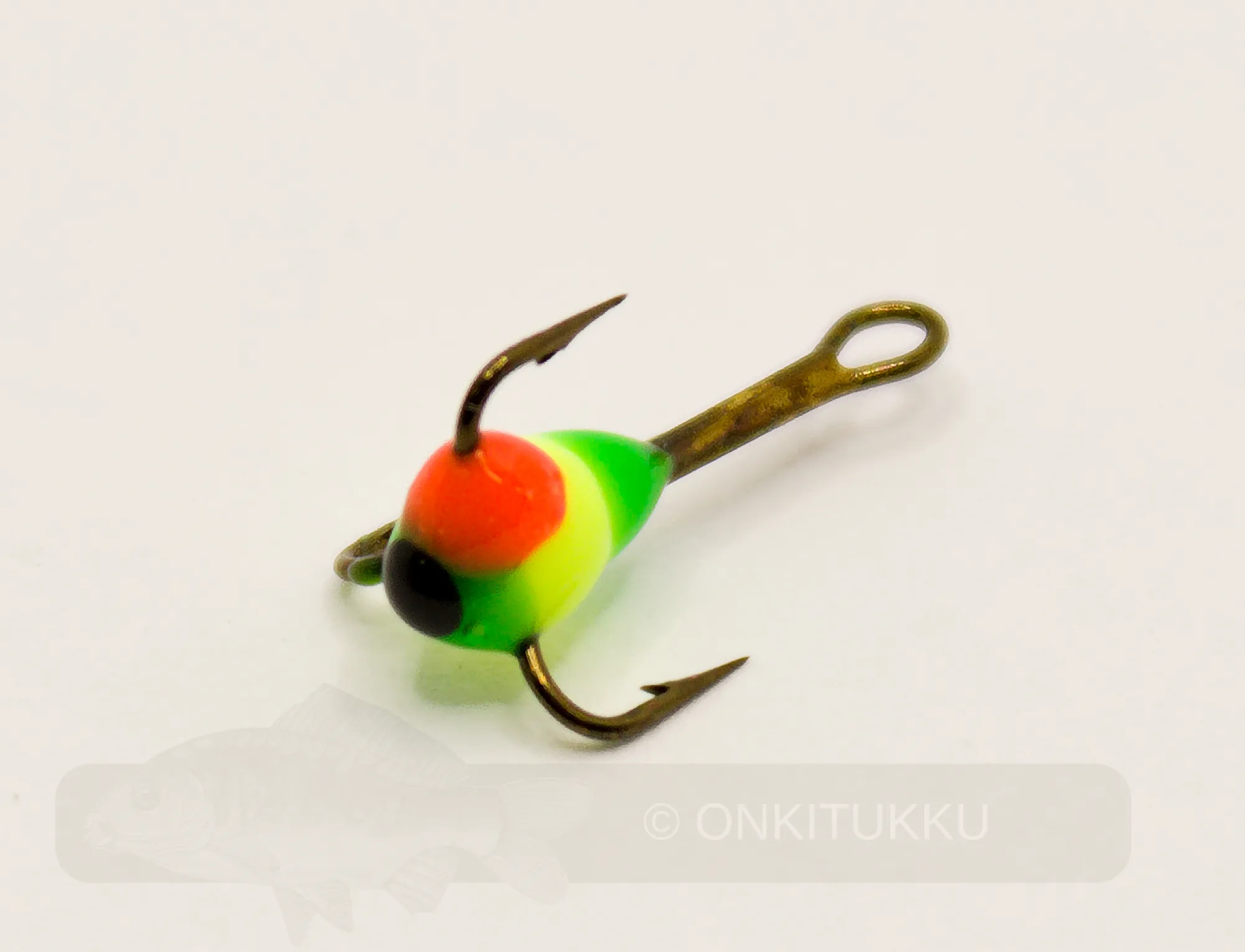 Suureen suosioon nousseet kotimaiset värikoukut. VMC:n kemiallisesti teroitettu koukku takaa hyvän tarttuvuuden. Osa maaleista ovat UV-maaleja.