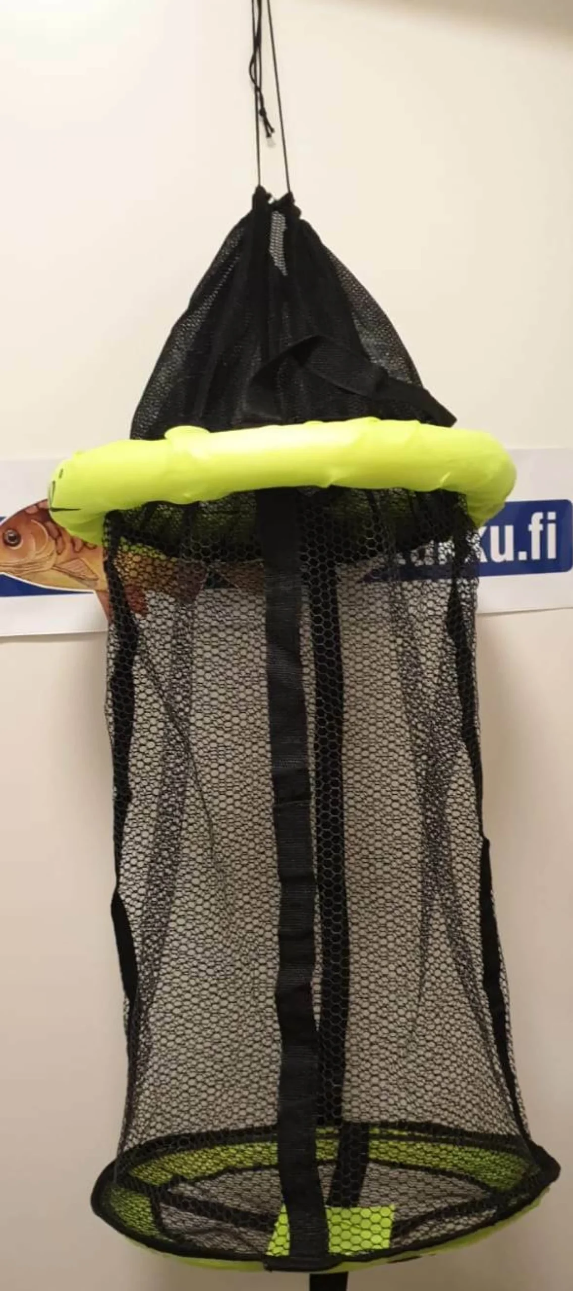 Kumista valmistettu venesumppu. Yläosassa on kellukerengas. Sumpun leveys on 40cm ja pituus kellukkeelle on 60cm. Sumpun voi sulkea pikakiinnikkeellä. Sumpussa on myös oma säädettä ja avattava kantoremmi. Pohjassa on ommeltu kiinnitysnauha.