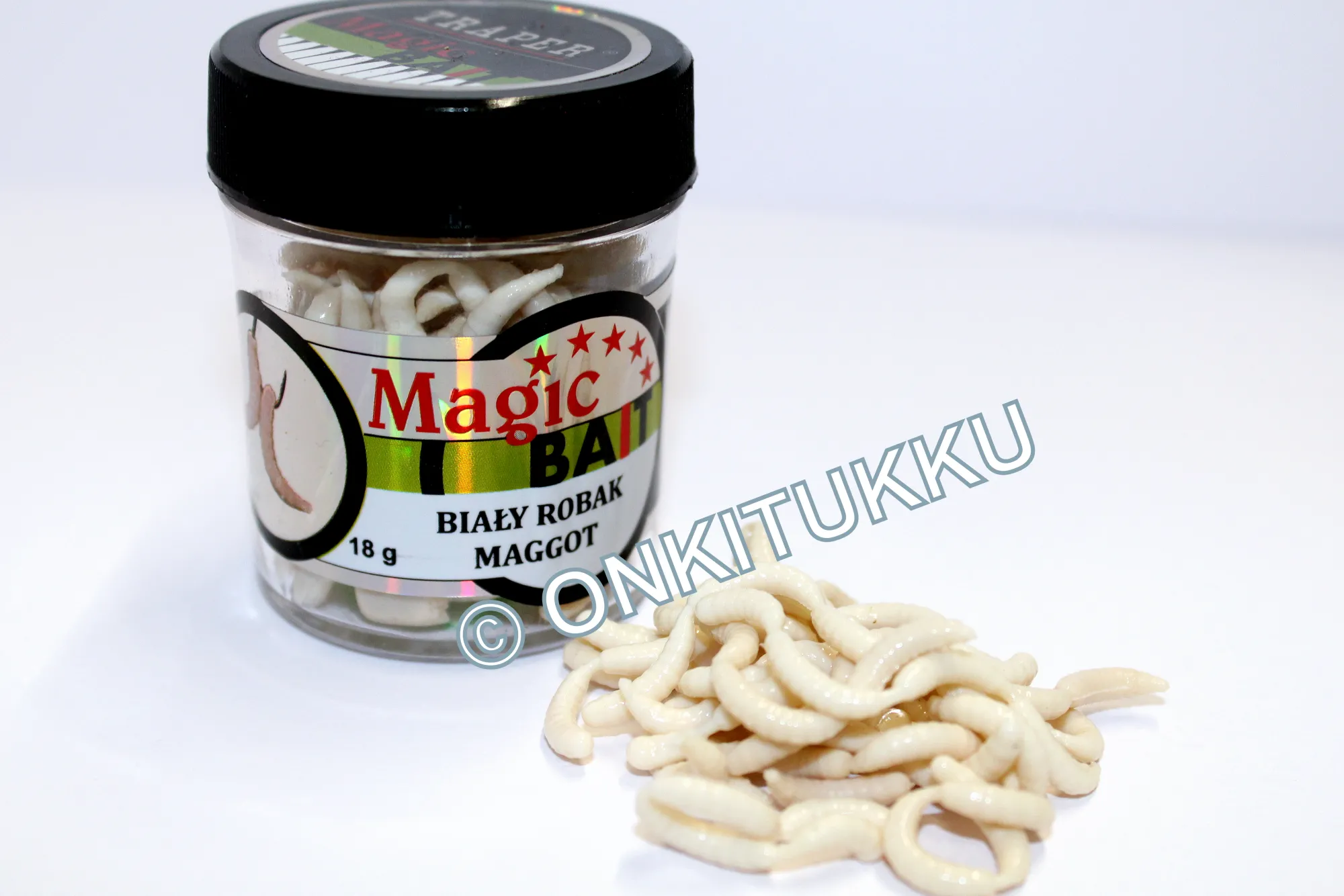 Keinotekoisia hajustettuja toukkia. Ulkonäöltään luonnollistatoukkaa imitoiva tuote.Pehmeä koostumusjonka ansiostatoukka on helppo pujoittaa koukkuun. Ota aina mukaan kalaretkelle näitä, niin syötit eivät lopu kesken. Purkissa on 18g.