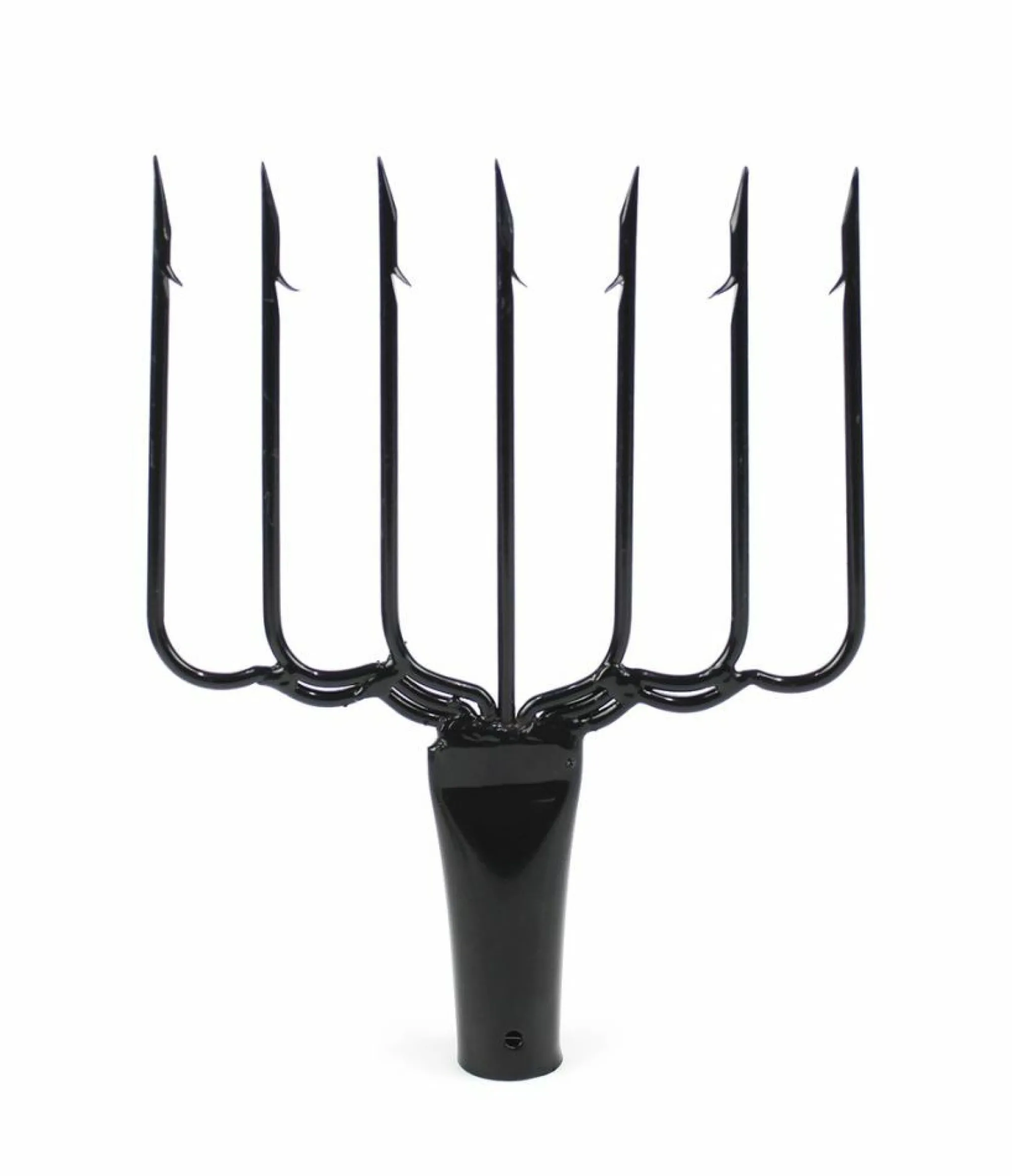 Seitsemän 12 cm pituista piikkiä. Leveys 16 cmViistoon teroitetut piikit väkäsillä. Sopii hyvin 25mm varteen.