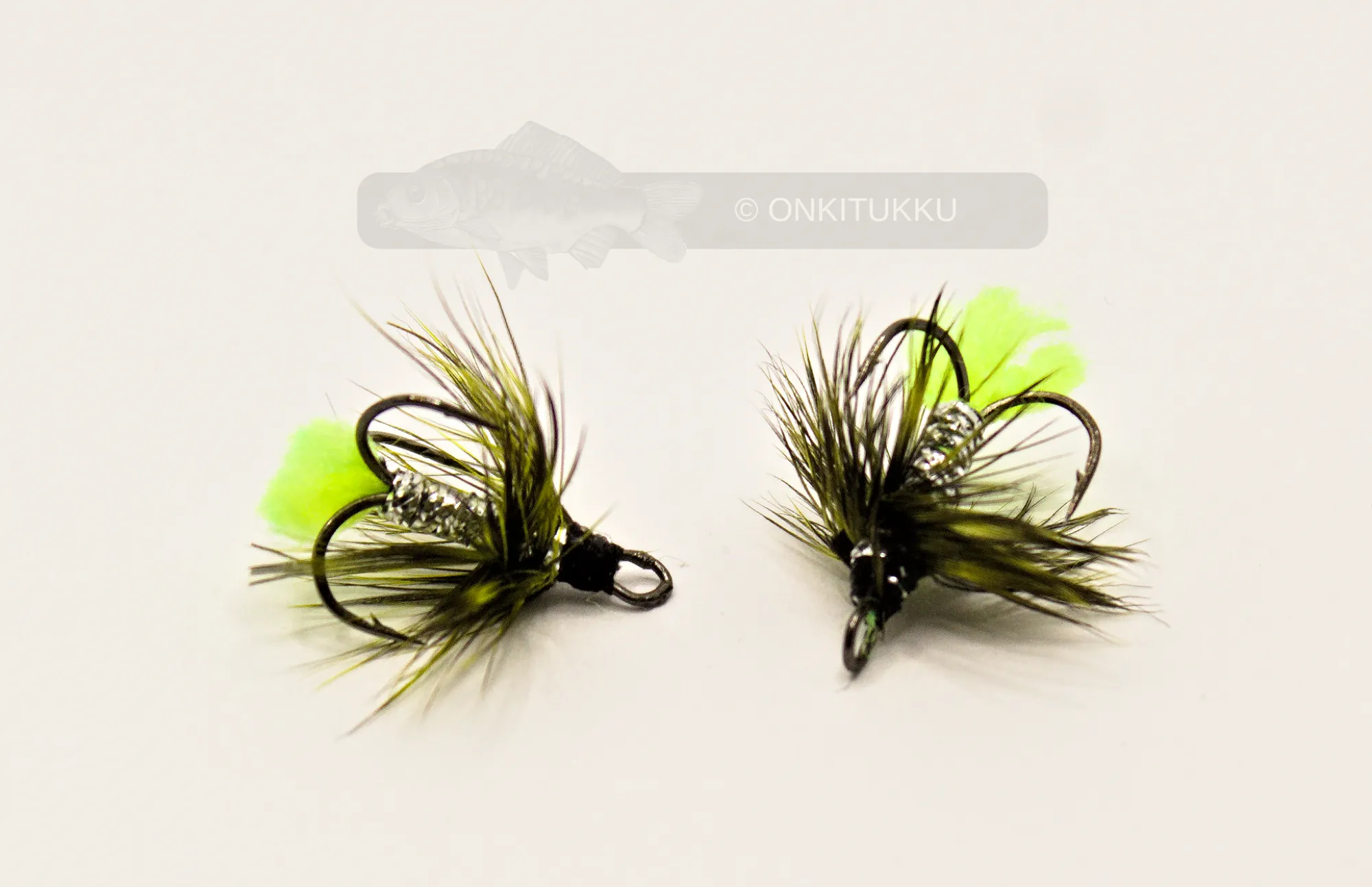Pakkauksessa 5kpl perhoja. Sidonnassa käytetty Kujira:n kemiallisesti teroitettuja kolmihaarahiiliteräskoukkuja.