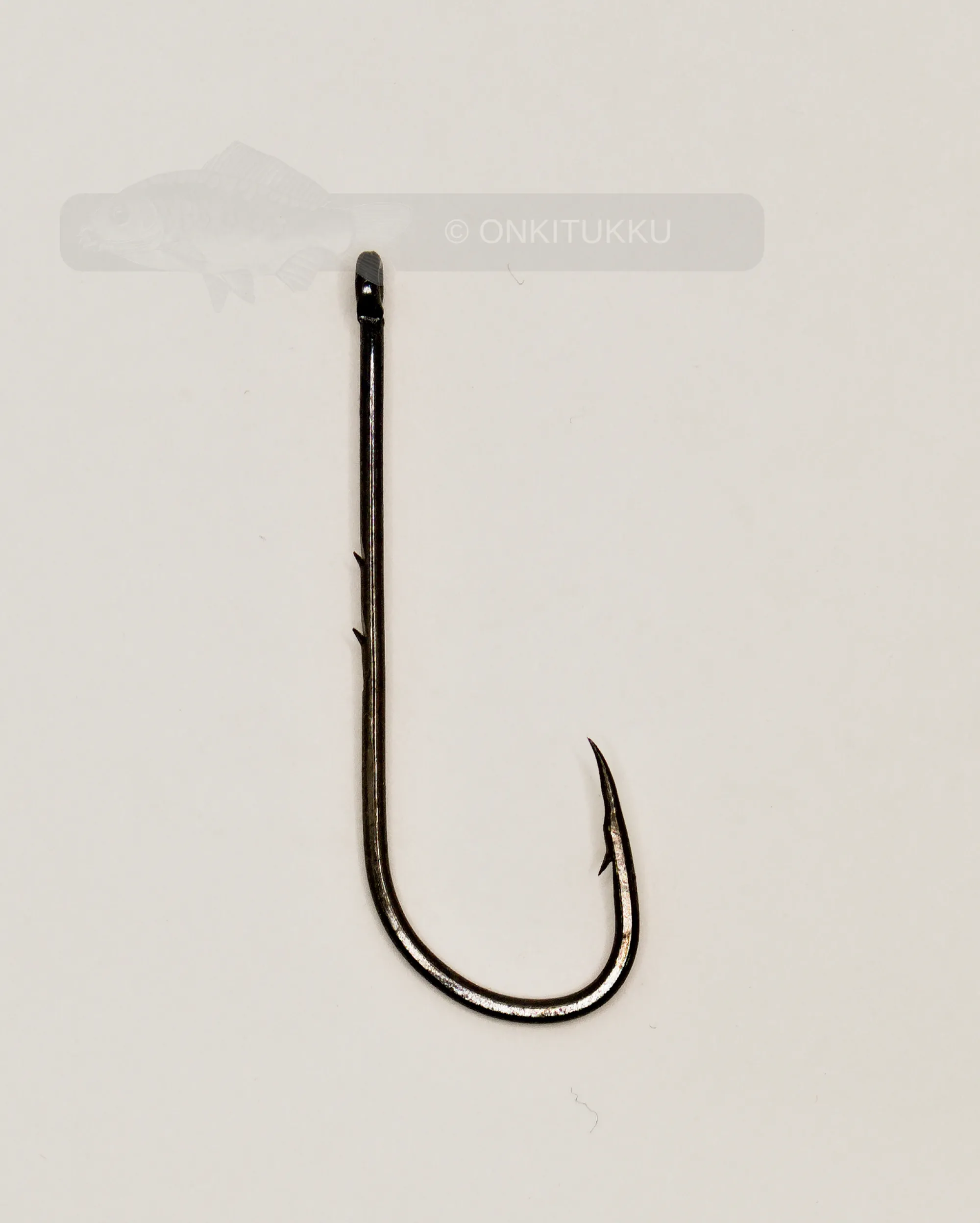 Kemiallisesti teroitettu hiiliteräksinen sivuvääräkoukku missä on pitkä varsi väkäsillä ja lenkillä.Koukun kok…
