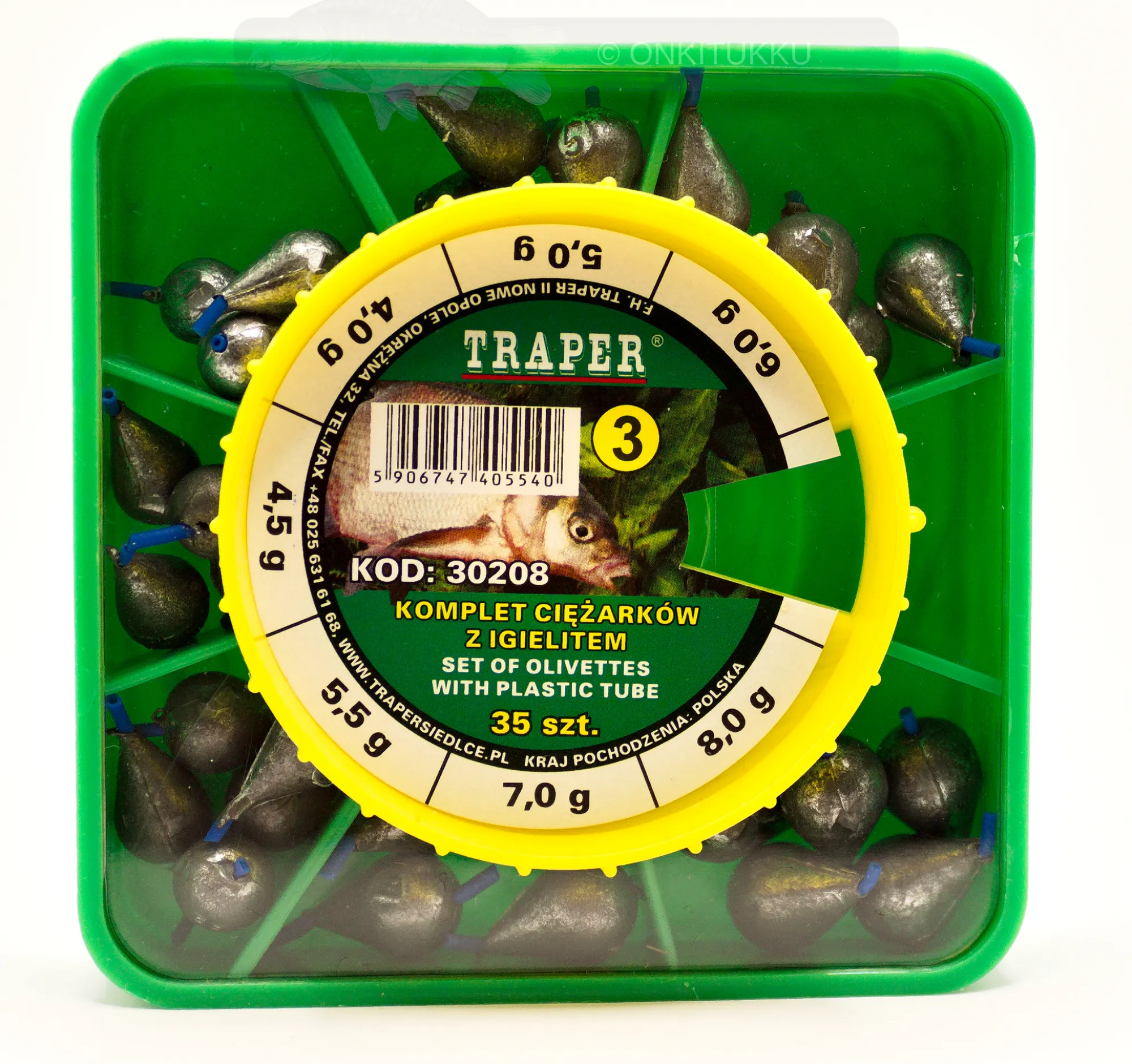 Olivettipaino jolla on hydrodynaaminen muotoilu. Hydrodynaamisuus estää olivettipainoa hyökkäämästä kun tiputtaa onkilaitetta veteen. Ei sotkeudu siimaan helposti. Olivettipainossa on sisäinen silikoniletku, joka suojaa siimaa kulumiselta. Rasiassa on yhteensä painoja 35kpl. Tämä on se lyhyempi ja pulskempi malli. Rasiassa on seuraavat koot: 4,0g – 4,5g – 5,0g – 5,5g – 6,0g – 7,0g – 8,0g