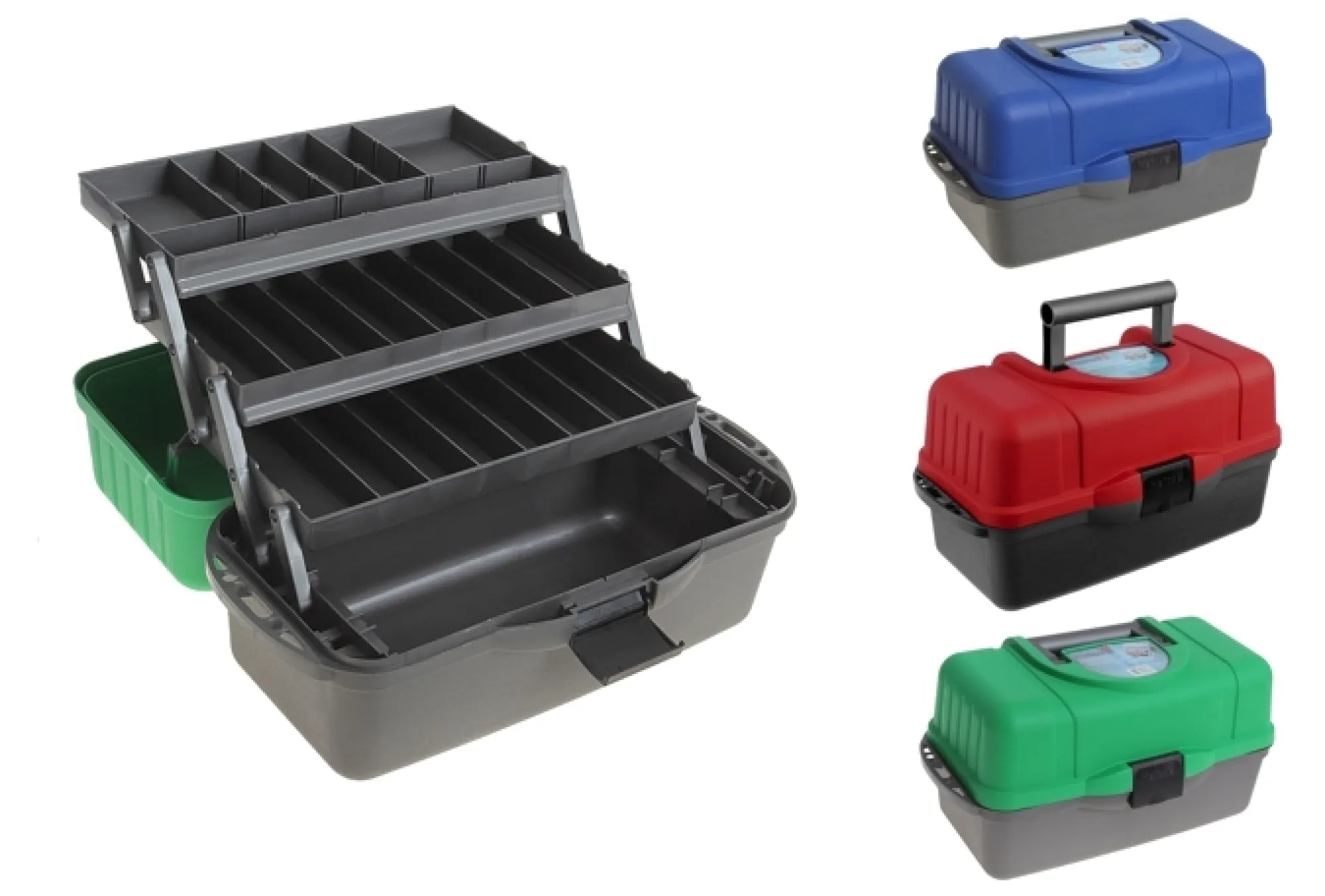 Jykevä kalastuspakki, kolmella säädettävällä tasolla. Pakissa on tilaa isoille uistimille ja vieheille. Sopii myös työkalujen ja muiden tavaroiden säilyttämiseen