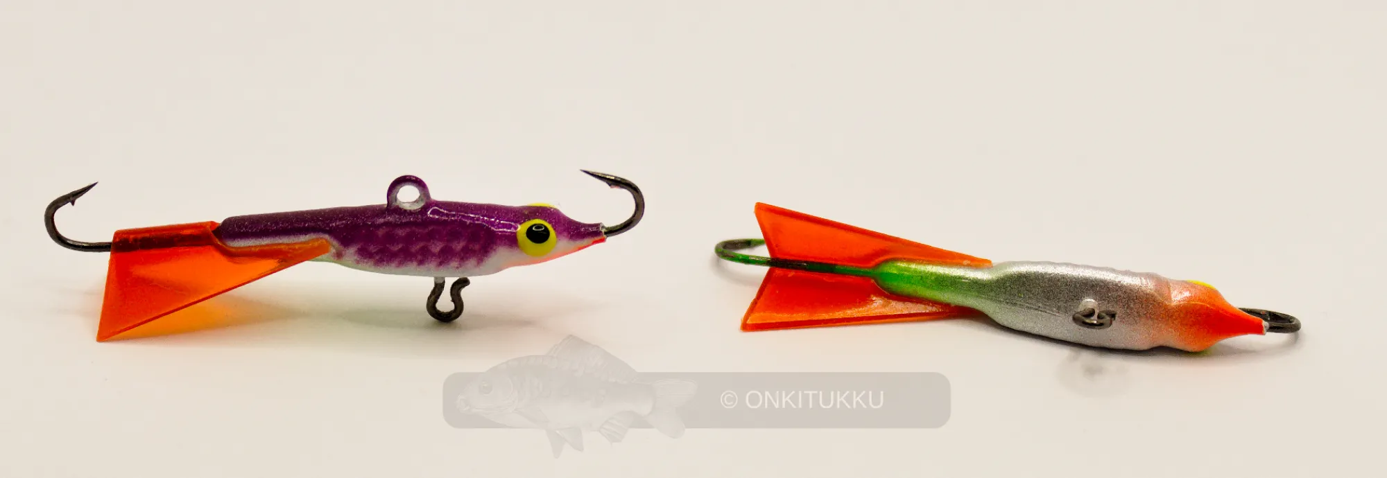 Siro tasapainopilkki isolla pyrstölevyllä. Erittäin tehokas ahvenelle. Pikakiinnityslenkki vatsakoukulle. Isot väkäset päätykoukuissa.