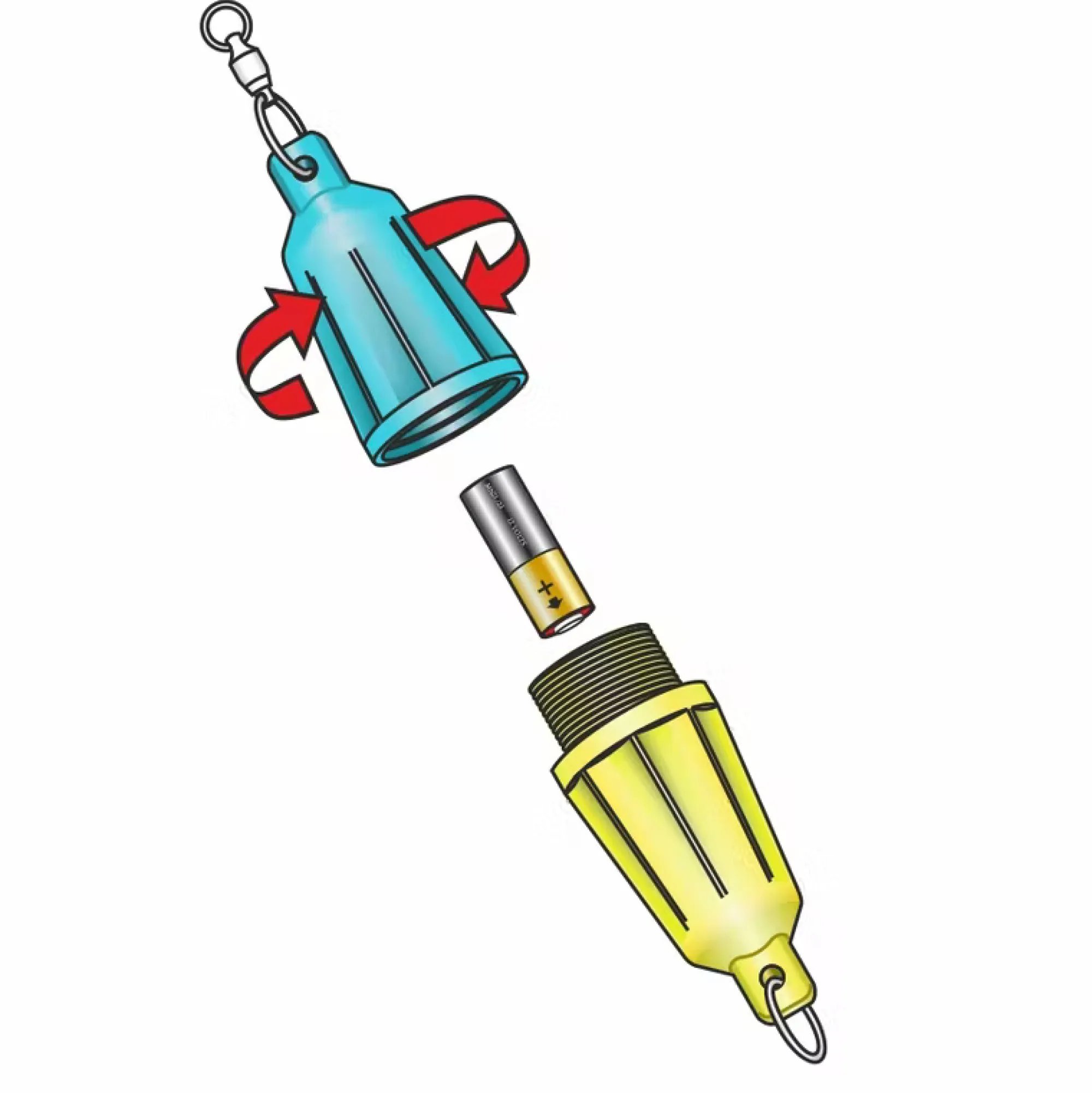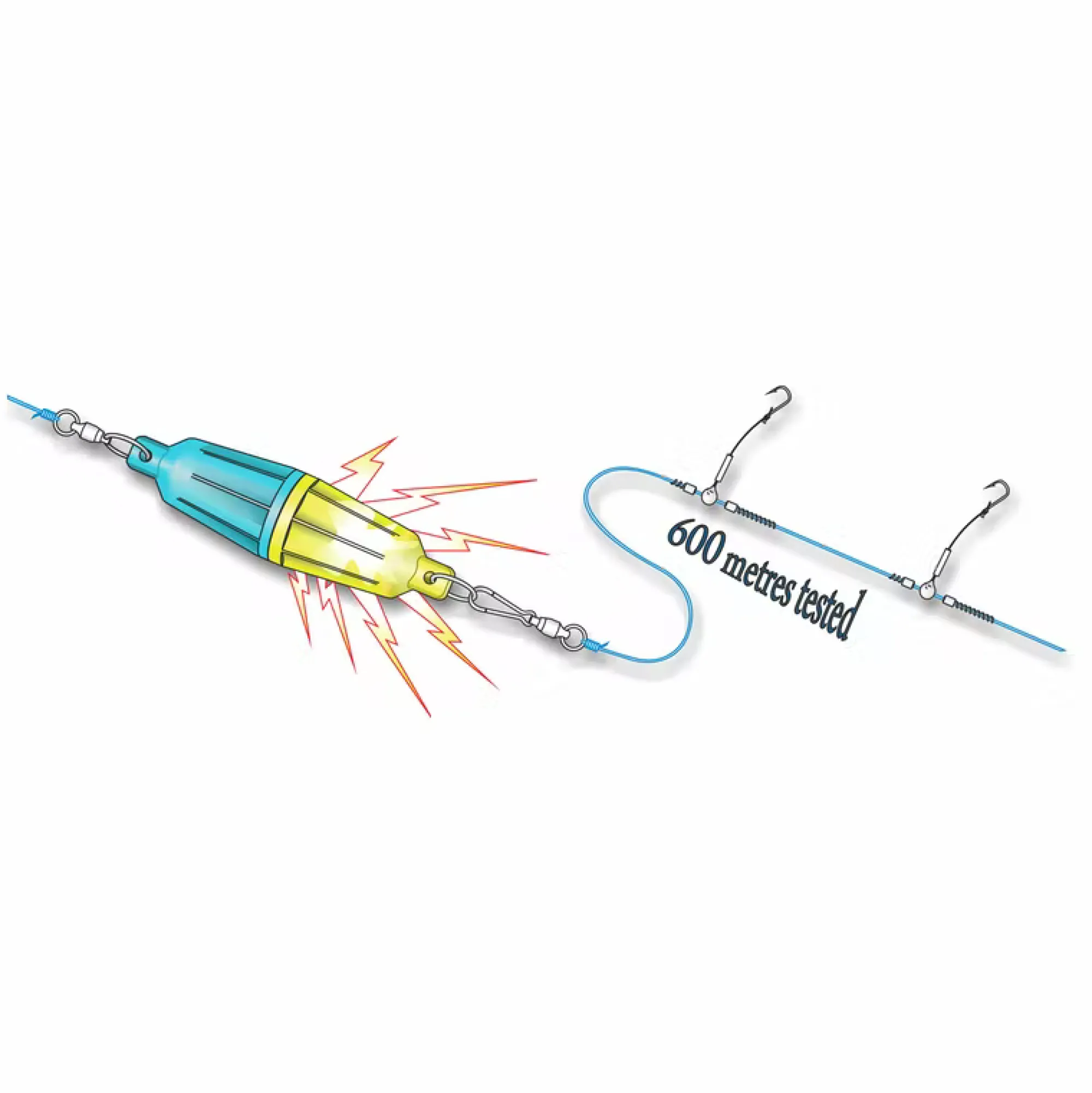 Fosforisävyinen houkutusvalo syvänmeren kalastukseen. Testattu 600m syvyydessä. Mukana tulee paristoa, mallia 23A. Valo on kiinnitetty vahvaan kuulalaakerileikariin. Ole tarkkana että olen ruuvannut osat riittävän tiukkaan yhteen ennen kalastamista. Väri sininen ja keltaisen luminoiva.