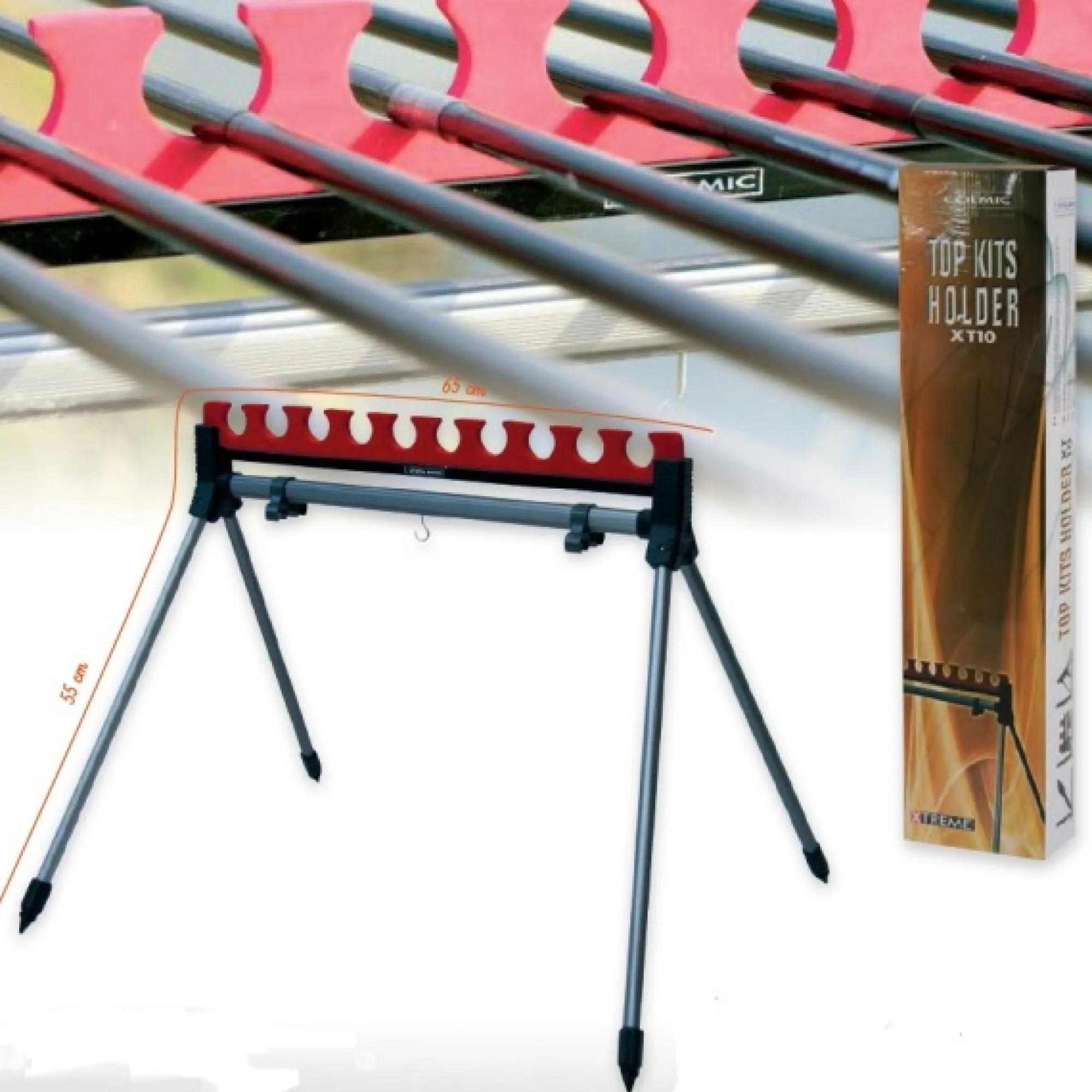 Entistä vankempi versio vanhasta klassikosta. Kapenevat yläreunat edesauttavat vapoja ja kärkiä pysymään telineessä myös tuulisissa olosuhteissa. Erittäin nopea pystyttää. Telineen alaosassa on nyt alumiiniputki jossa on koukku ankkurointia tai painoa varten. Hyvä paino voi olla muovipussi johon laitetaan kivi.