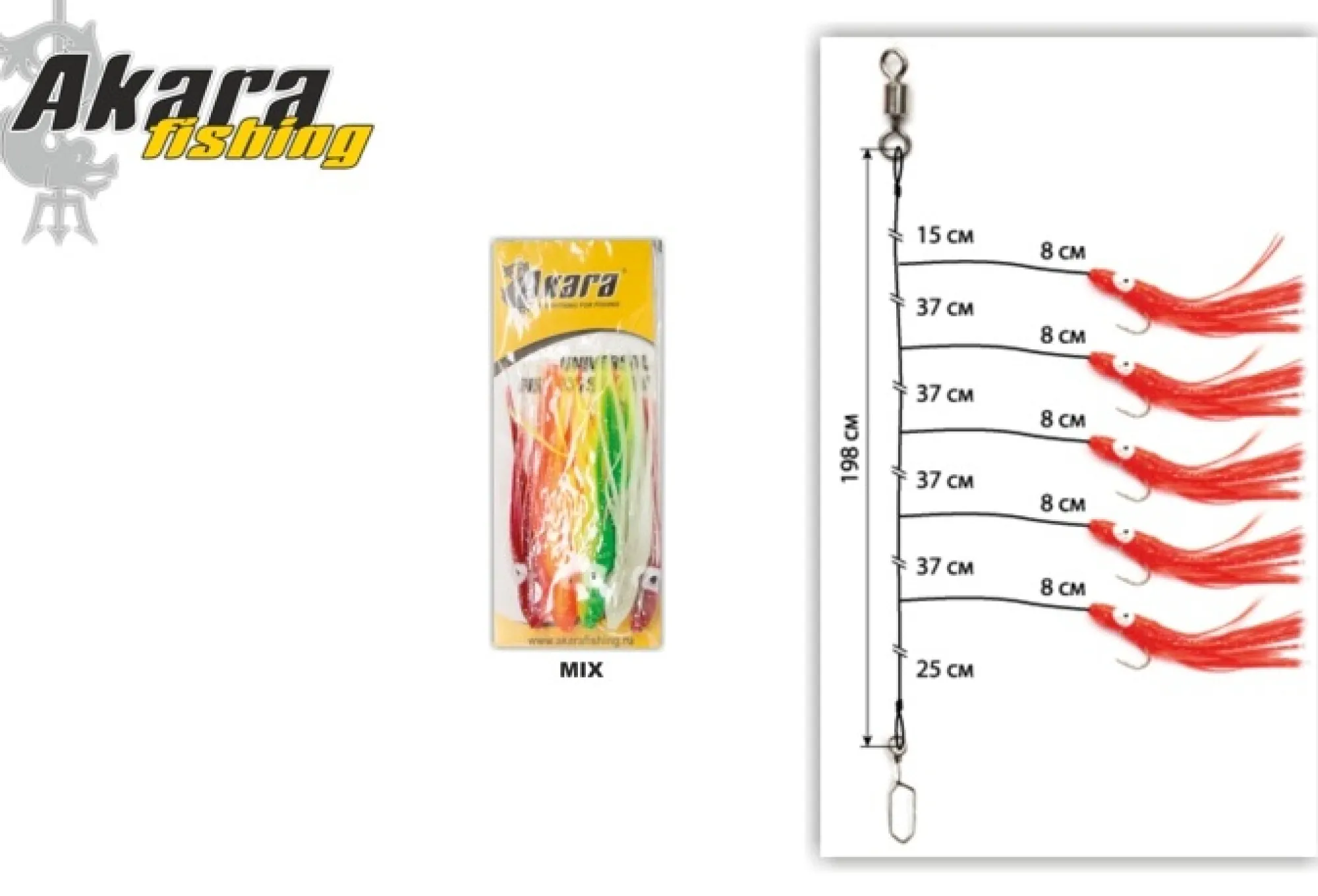 Kirkas siima paksuus 0,8 mm. Koukkujen päällä mustekala syötti. Koukun koko:5/0 Siimanpaksuus 0,8 mmPituus 198 c…