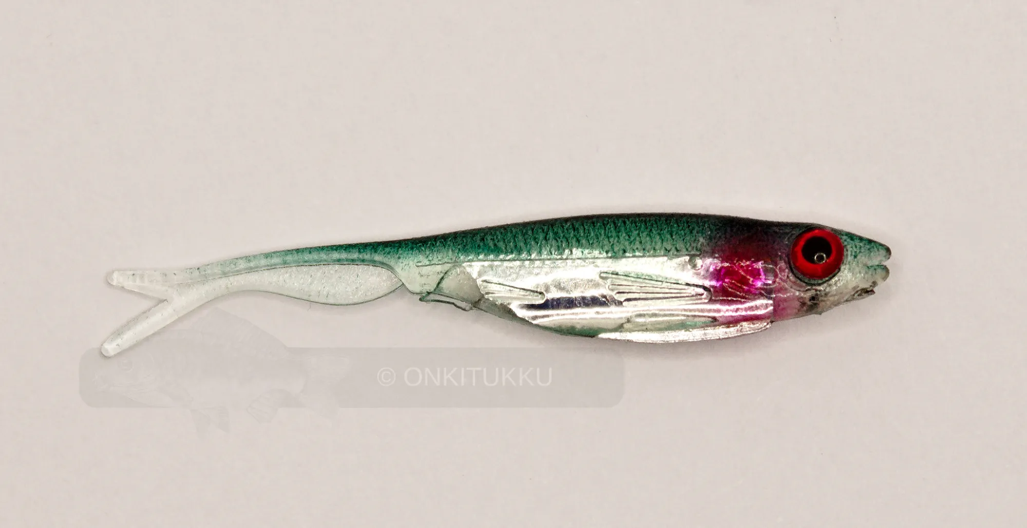 Erittäin tehokas haarapyrstöinen kalajigi, jonka sisällä on kiiltävä kultainen foliolevy joka lisää jigin houkuttelevuutta. Toimii erittäin tehokkaasti drop shot jiggauksessa. Toimii hyvin hauen, ahvenen ja kuhan kalastukseen.