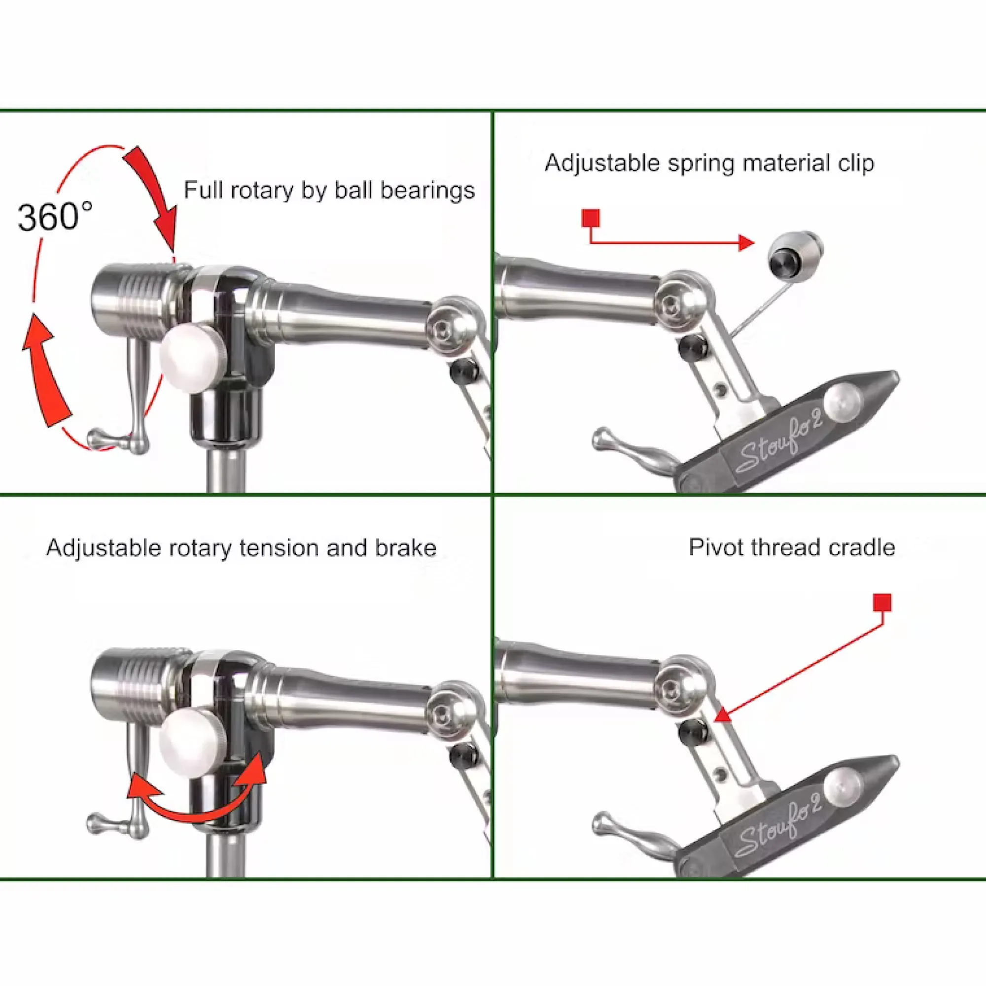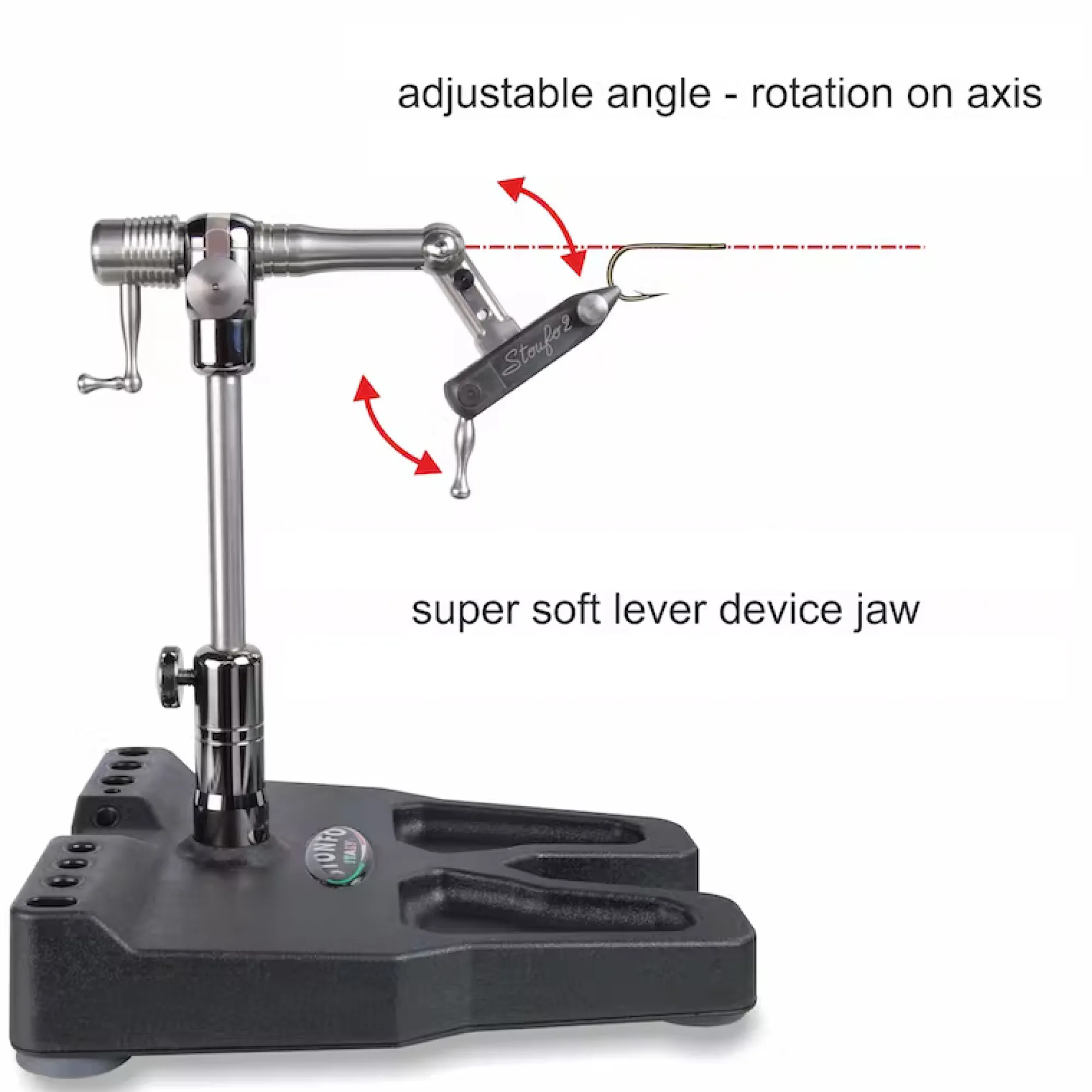 Stonfo Elite on erittäin laadukas italialainen sidontapenkki 360° rotaatiotoiminnolla. Penkissä on tukeva pöytäjalusta missä on lokerot työkaluille. Leuat on mahdollista asettaa asentoon missä koukku pyörii vain oman akselinsa ympäri mikä helpottaa sitomista. Mukana tulee myös häkilätyökalu. Leuat sopivat koon 28 – 4/0 koukuille